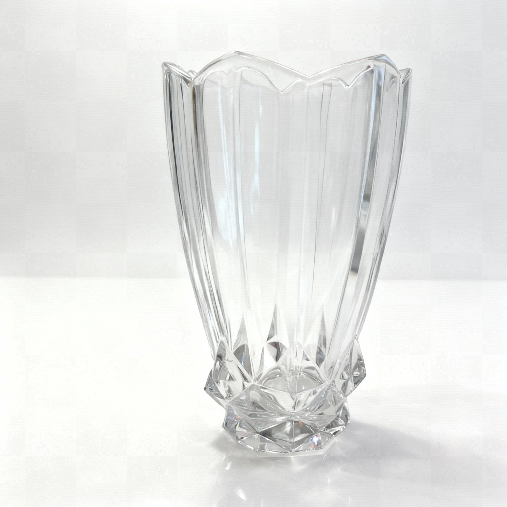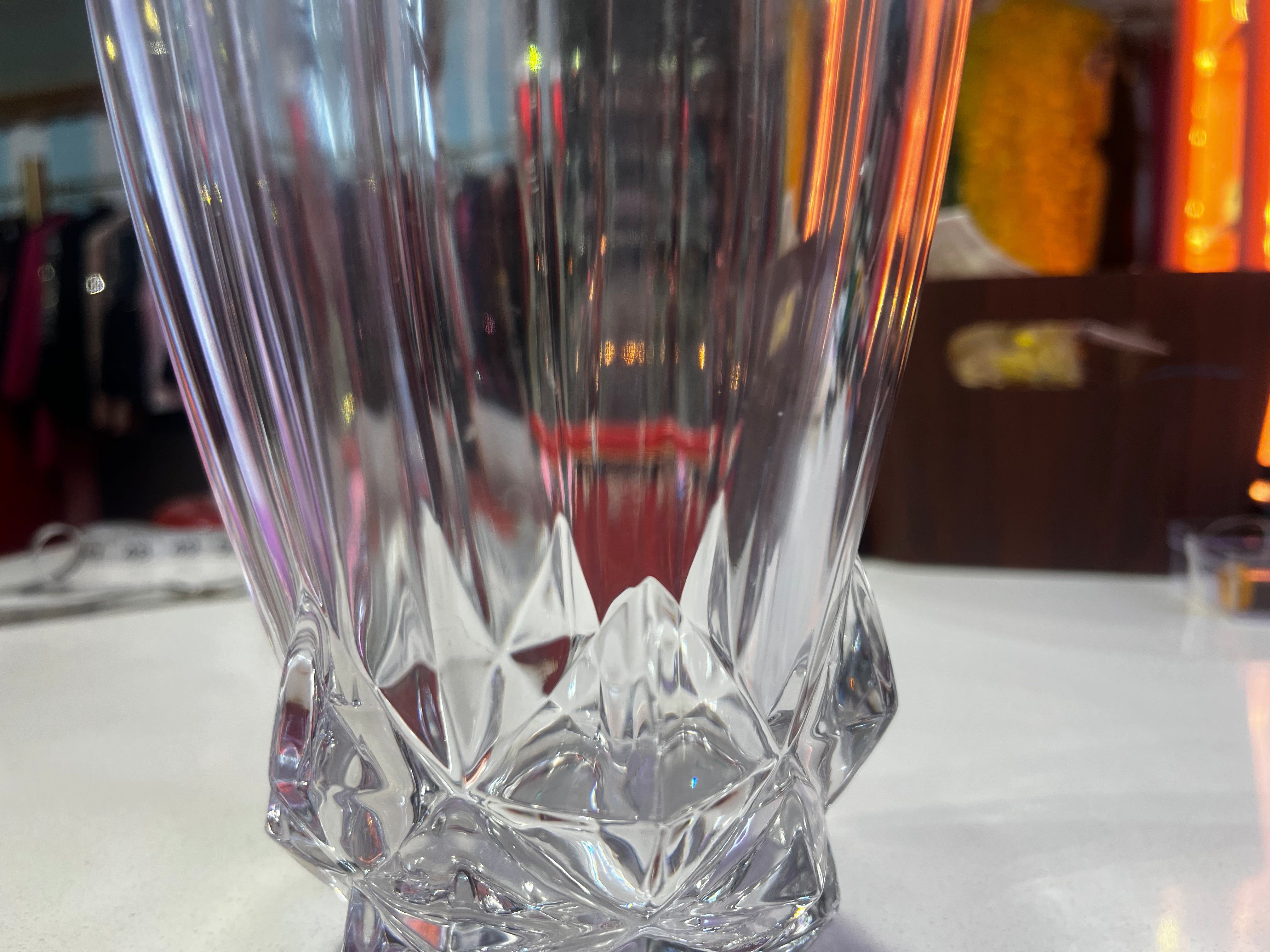 Add a touch of timeless sophistication to your home with this Vintage Glass Crystal Vase, beautifully crafted to capture the elegance of classic design. Measuring 9.5 inches high and 6 inches wide, this piece showcases exquisite detailing that reflects light gracefully from every angle. Its refined shape and intricate patterns make it perfect for displaying fresh flowers, dried arrangements, or as a standalone decorative accent. Elegant yet versatile, this vase brings a sense of luxury and charm to any room — a true collector’s piece for those who appreciate fine craftsmanship and vintage beauty.
