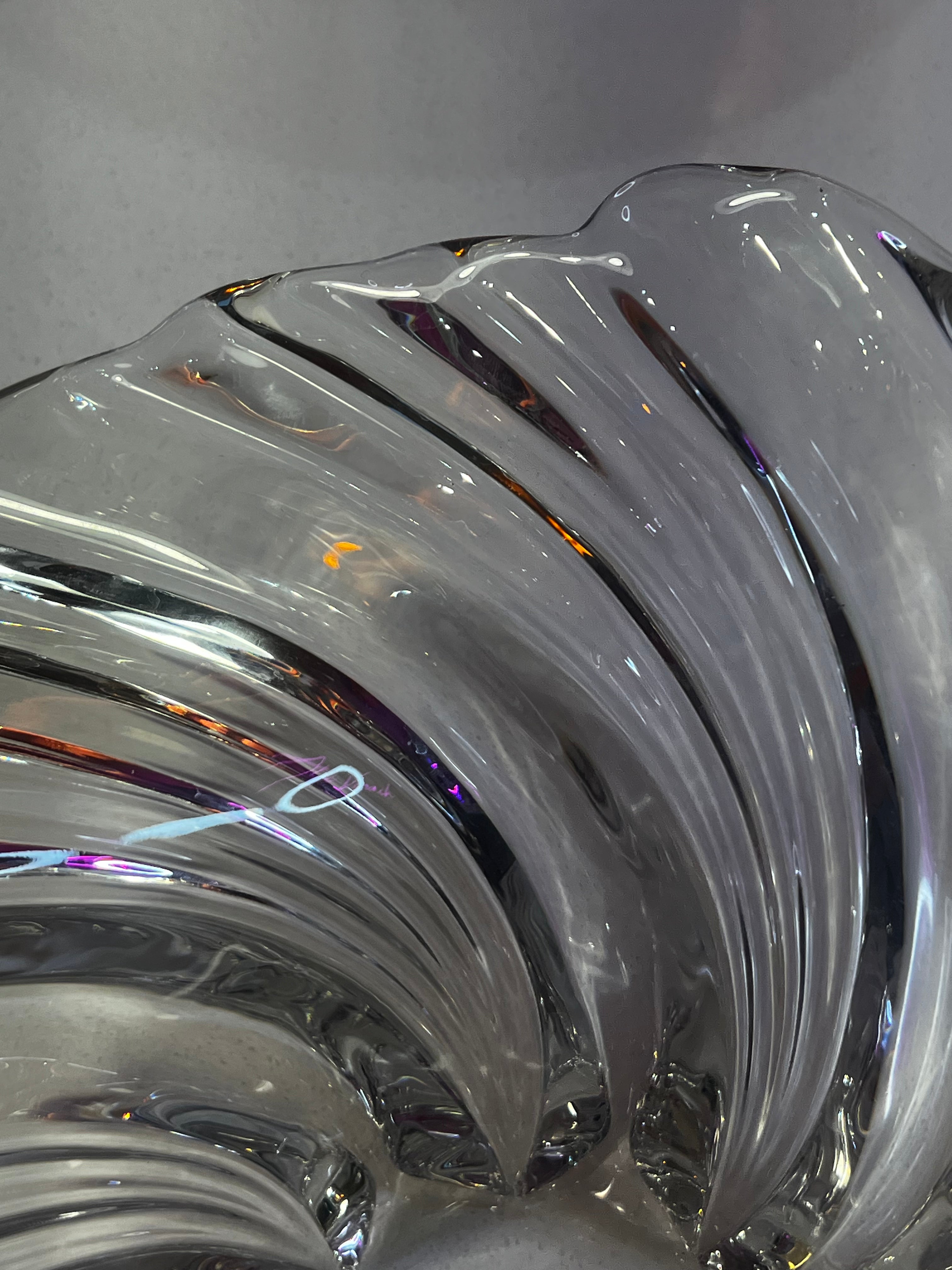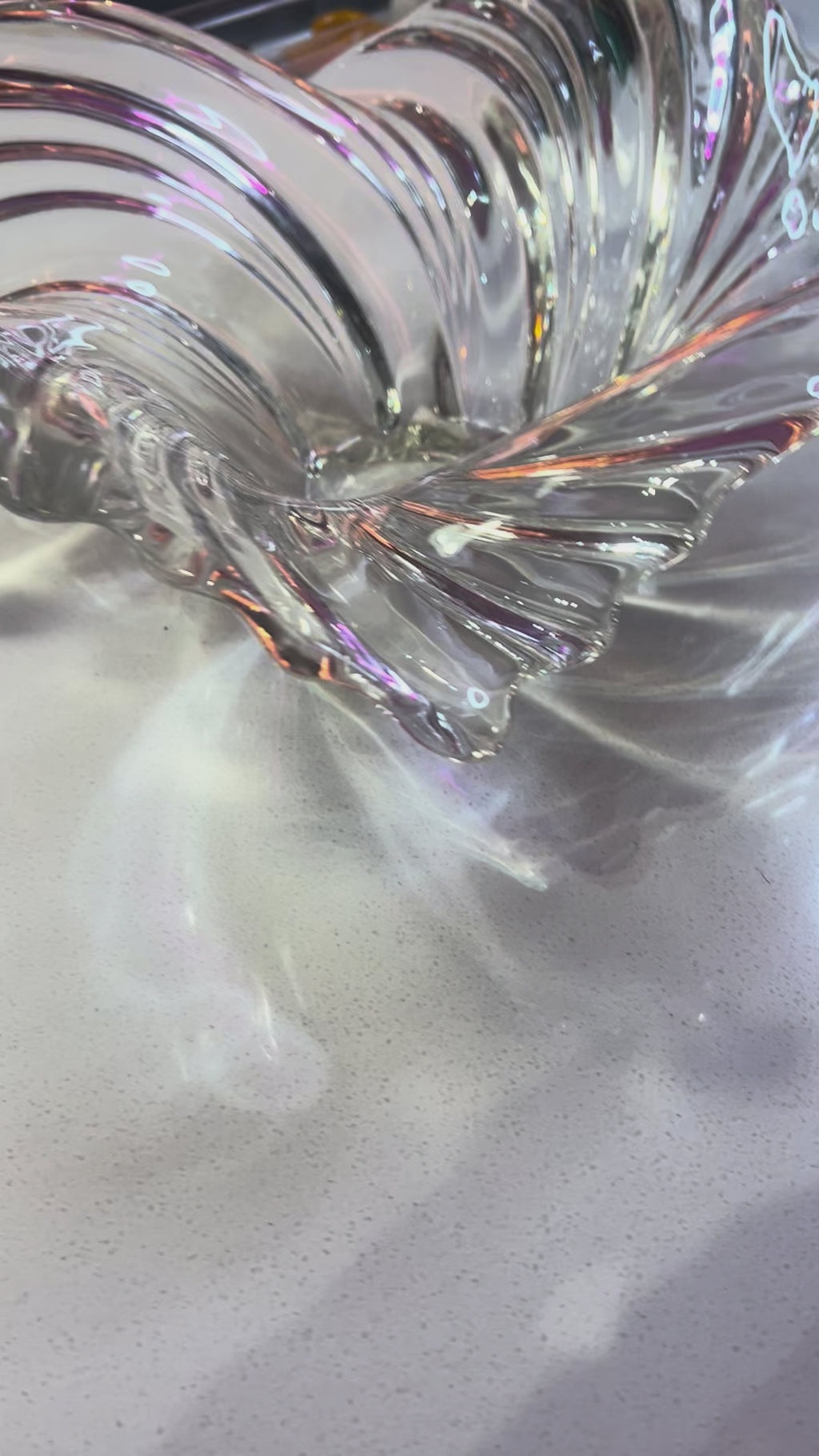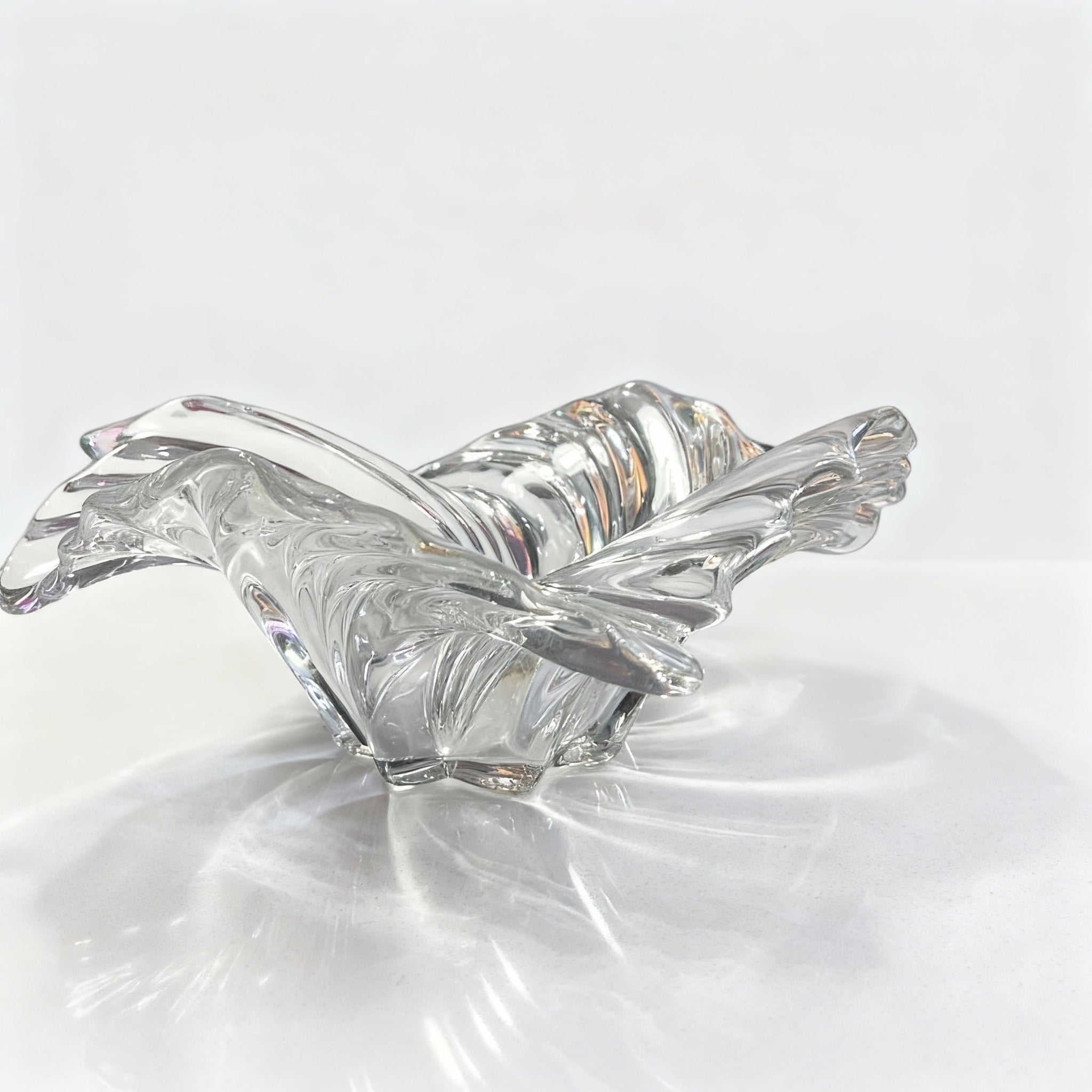 Showcase sophistication and artistry with this Rare Shape Crystal Bowl, a unique decorative piece that captures attention with its distinctive design. Expertly crafted from high-quality crystal, its unusual form and elegant contours create a dynamic play of light and reflections. Perfect as a standalone statement piece, centerpiece, or for displaying decorative items, this bowl adds timeless luxury and refined style to any interior. A collectible accent for connoisseurs of fine crystal, it blends artistry, craftsmanship, and modern elegance.