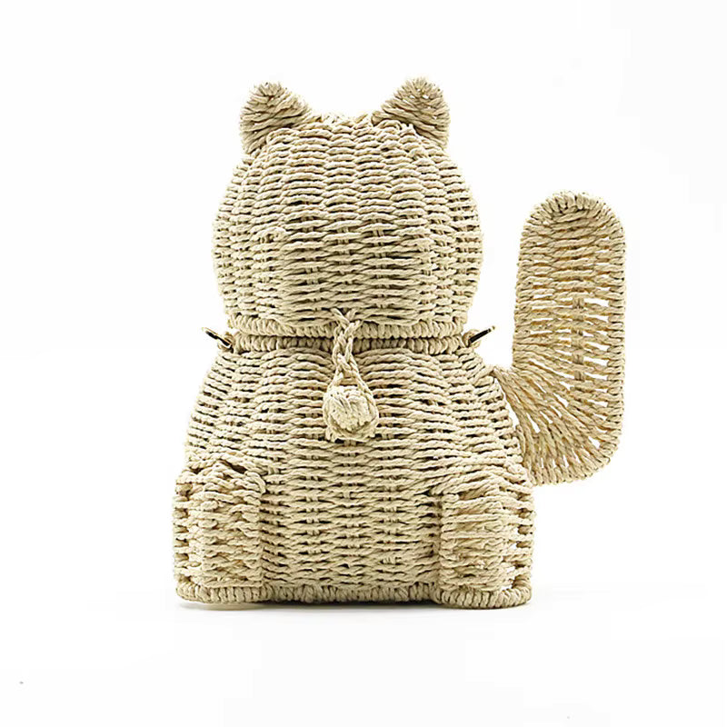 Bring playful charm to your accessories collection with this Cat-Shaped Rattan Bag, a handcrafted piece that combines whimsy with elegance. Expertly woven from natural rattan, it showcases a unique feline silhouette that’s both stylish and fun. The interior is fully lined with soft cotton, ensuring your essentials stay safe and organized while adding a touch of comfort and quality. Lightweight yet durable, this bag is perfect for casual outings, beach days, or as a statement accessory that reflects your individuality. A blend of artisanal craftsmanship and creative design, it’s a must-have for fashion lovers who adore unique details.